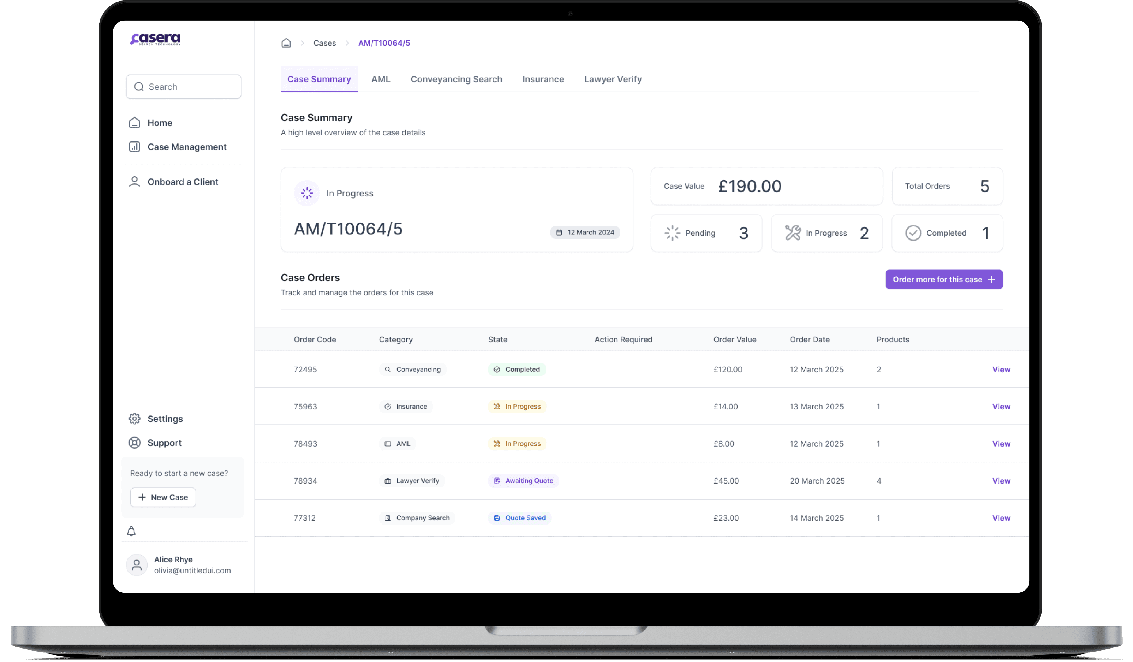 Use Casera as your one stop shop and order from a wide range of reports including AMLs, source of funds, lawyer checks & more.
