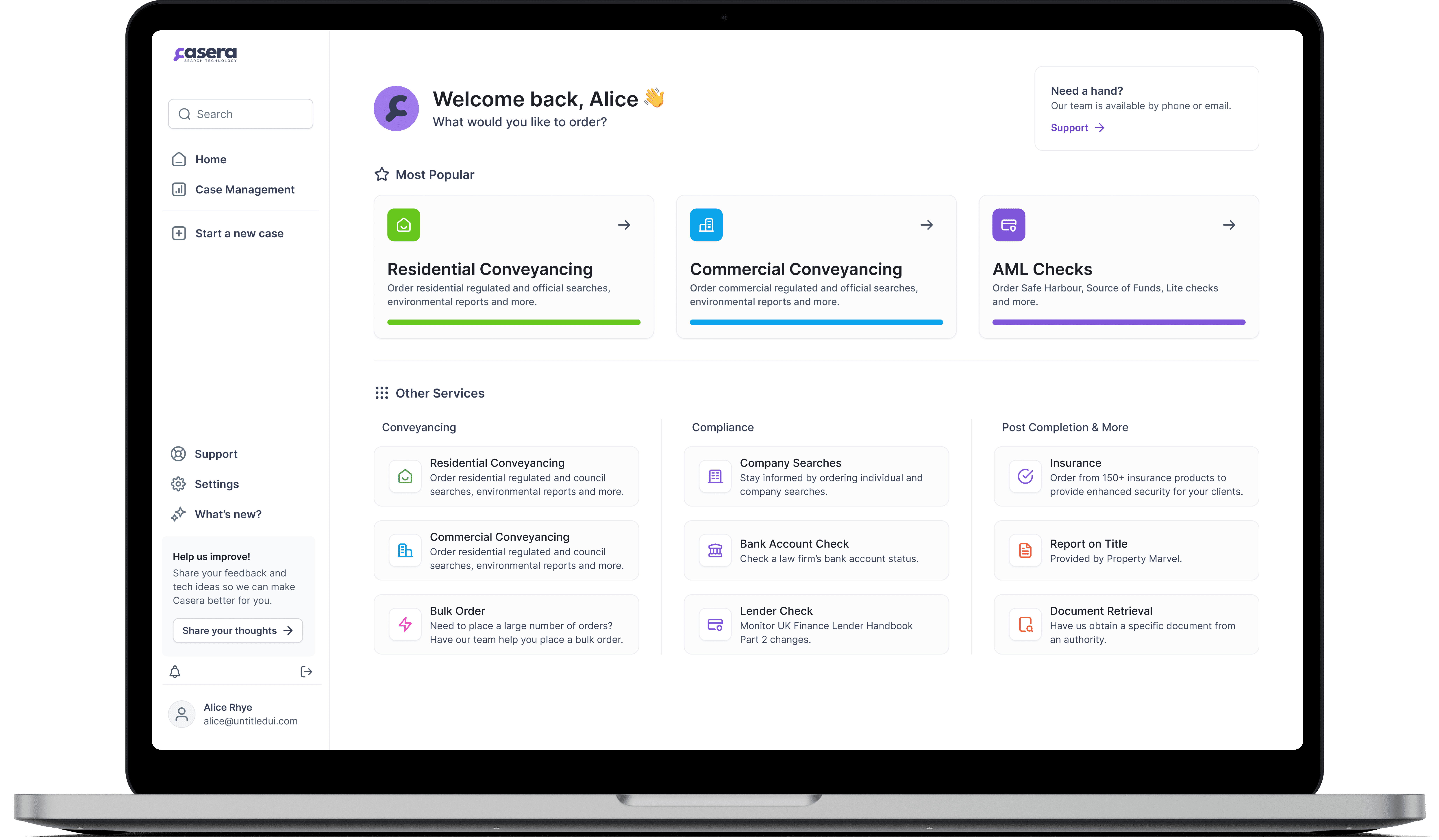 Use Casera as your one stop shop and order from a wide range of reports including AMLs, source of funds, lawyer checks & more.